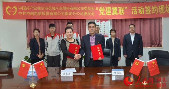 活动中,长城集团党委书记袁红梅、中国电信保定分公司党委书记张保东签署了“党建翼联”合作书,双方将立足各自实际和特点,有效整合双方在党建、文化、科技、信息、阵地、经费等方面的资源优势,以共建共享为基础,以合作共赢为目的,积极拓展基层党组织功能,激发党员活力。