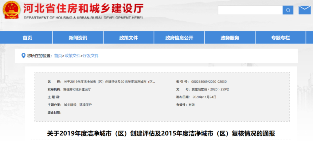 按照《河北省住房和城乡建设厅关于开展2019年度洁净城市(区)评估及2015年度洁净城市复核工作的通知》(冀建城管函﹝2020﹞67号)安排,经履行县(市、区)自评、市主管部门初评、省厅组织现场终评等程序,在各市推荐的基础上,8月-10月,我厅组织有关专家组成复核组,采用明查和暗访相结合的形式,对参评2019年度“洁净城市”的县(市、区)进行评估,对2015年度10个“洁净城市(区)”进行暗访复核。经实地调研、考核评分,确定石家庄市新华区等16个县(市、区)通过“洁净城市”评估,保定市高碑店市等10个2015年度“洁净城市”继续保持“洁净城市”标准,对上述县(市、区)进行通报表扬,在县城建设评估中予以加分。